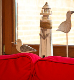 Öffnet man die Tür zu der Ferienwohnung so wird man schon im Flur von einer warmen, gemütlichen Atmosphäre empfangen. Das Gefühl setzt sich im offenen Wohn – und Essbereich fort – helles Holz, dezente helle Töne und ein direkter Blick auf die kleine Terrasse. Die offene Küche unter einen Holzbalken-Decke lädt zu entspannten Abenden ein, die man auf dem Sofa im aufgewerteten Wohnzimmer ausklingen lassen kann. Die gesamte Wohnung vermittelt durch die Kombination aus urigem Holz, geschmackvollen Möbeln und niedlichen Details Wärme und Geborgenheit. Vom Eingangsflur abgehend warten zwei getrennte Schlafzimmer, wo man sich von den Aktivitäten eines Urlaubstages erholen kann.